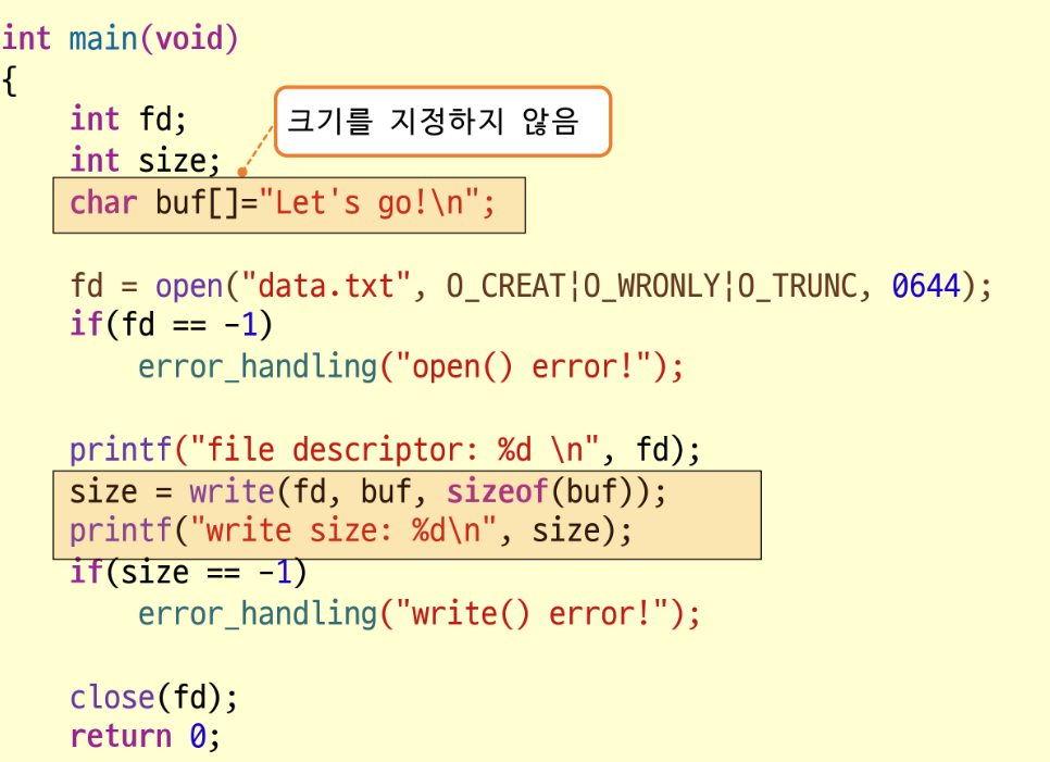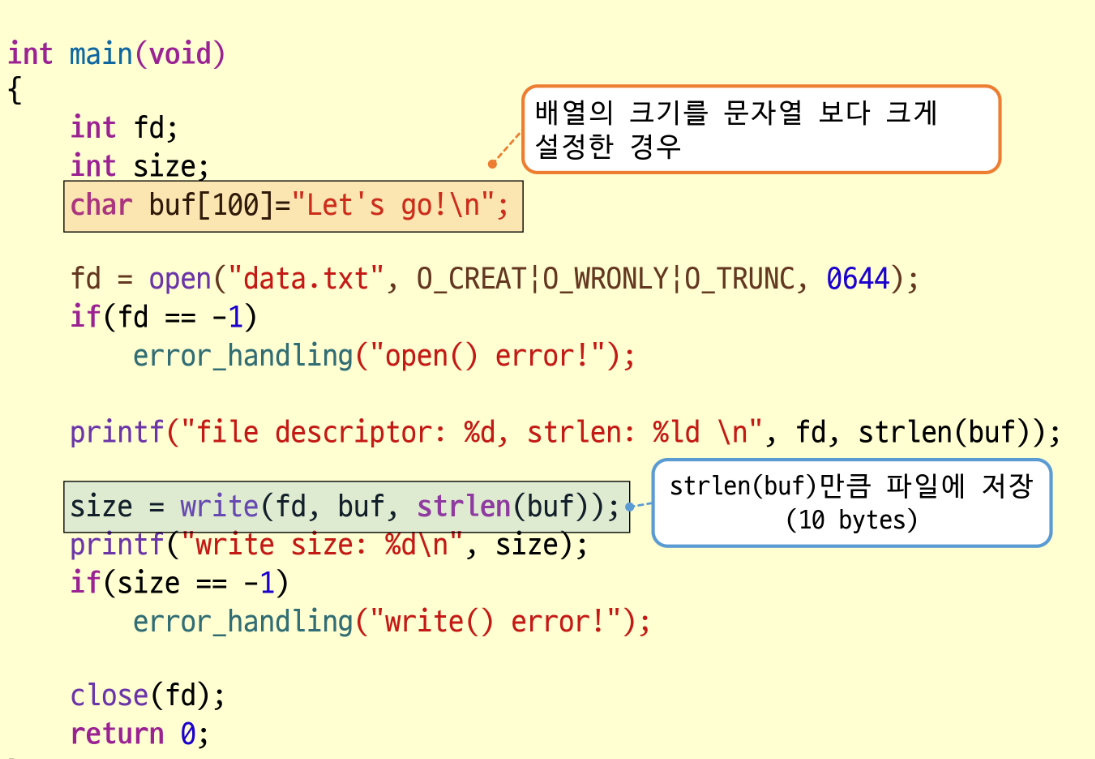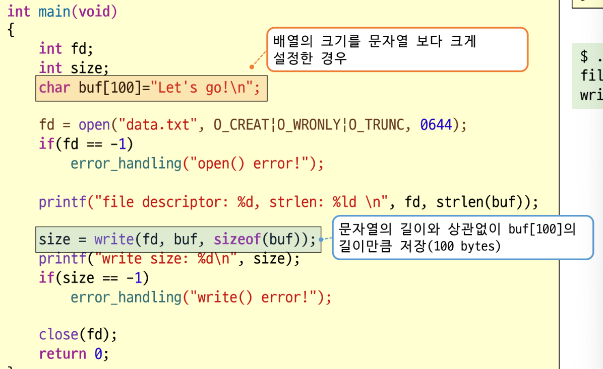 sizeof(buf)가 아니라 strlen(buf)로 파일에 저장할 때 : 문자열 크기로 저장할 때