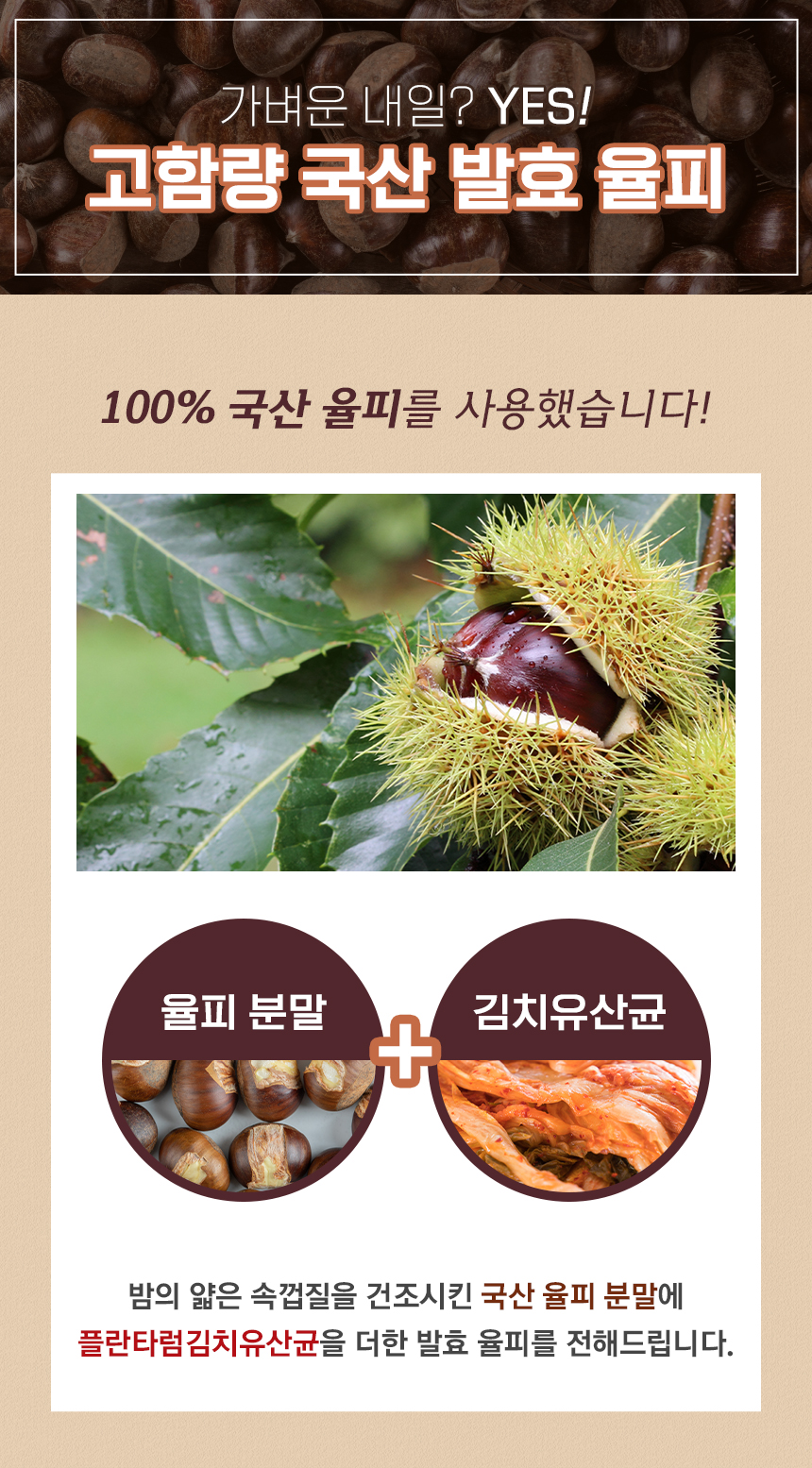 발효율피라는 것은 저에게는 생소한 단어였기 때문에 명확하게 어떤 효능을 가지고 있는지 알아봤는데 지금의 저에게 꼭 필요한 성분이 아닐까 생각했어요 🙂 발효율피는 밤을 둘러싸고 있는 얇은 껍질을 의미합니다.동의보감과 본초강목에 기재된 원료에 각종 폴리페놀 성분이 들어있다고 합니다!
