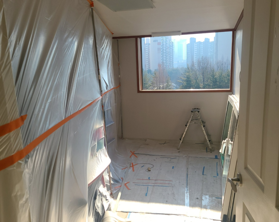 거실이 확장되었습니다. 단열재로 스티로폼을 덧대었습니다.